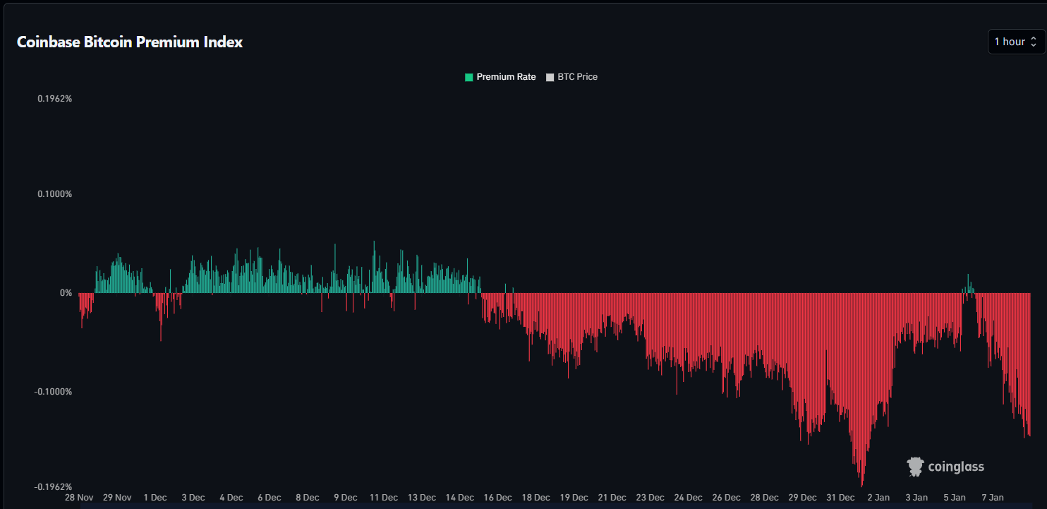 The Coinbase premium indicator briefly turned green but has since returned to deep negative territory, signaling a lack of demand.