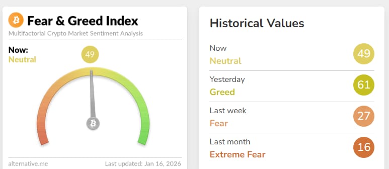 🟢 After weeks of extreme fear, sentiment has finally crawled back into neutral and even slightly into greed territory.