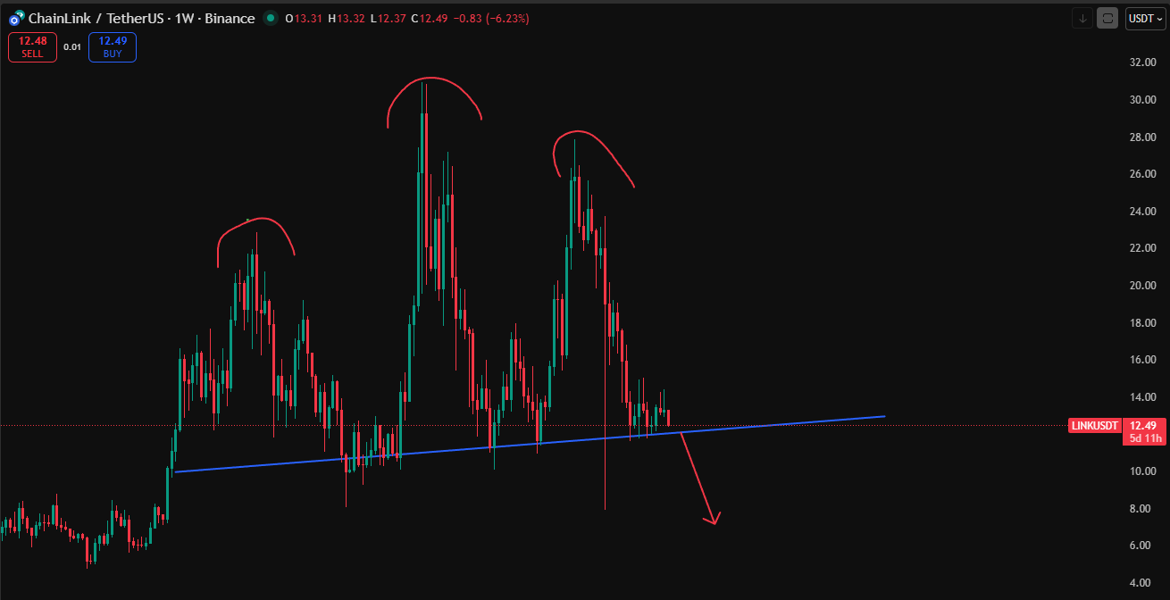 Altcoins are in the same boat. Many are forming large head and shoulders patterns on weekly charts. On top of that, there are still big liquidation wicks from 10.10.2025 that have not been fully revisited.