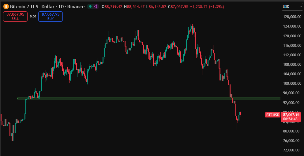 Holidays and weekends usually slow down volatility and in conditions like this the market can slowly grind upward. Based on the current setup BTC could retest the 93k to 94k zone which would provide some much needed relief.